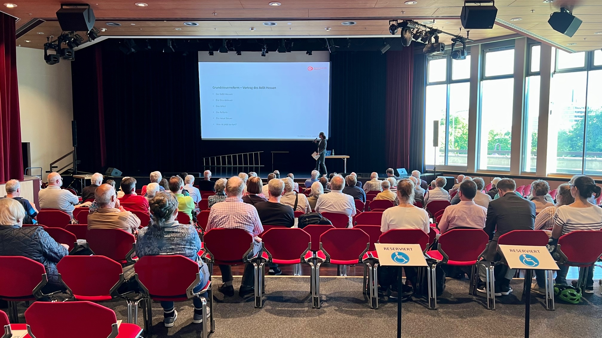 Die Informationsveranstaltung zur Grundsteuerreform war ein voller Erfolg – im wahrsten Sinne des Wortes. Bereits vor der Veranstaltung waren mehr Besucher als Sitzplätze da – die Veranstaltung wurde deshalb kurzfristig vom Kleinen in den Großen Saal umgezogen.